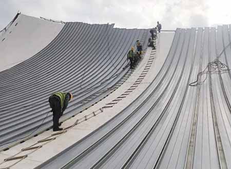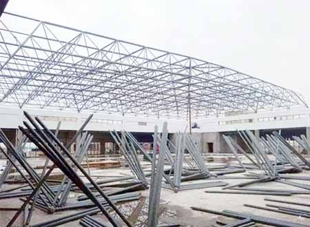 2.5 Installation of the steel roof: Upon arrival, materials should be sorted and categorized, with precautions taken for rainy or snowy weather. The assembly sequence should follow: embedded parts → steel framework → purlin system → insulation system → cladding system → ventilation system → waterproofing system. Embedded parts must be accurately positioned and securely connected to the concrete columns. Guided by the installation numbers and drawings we provide, all components should be installed step by step. Upon completion, every bolt must be checked for tightness, and all panel joints must be verified for proper waterproofing.