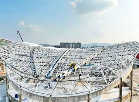 A reliable metal roof must first have a sturdy skeleton system. Given the typically large span of steel roofs, spatial grid structures are often used as the load-bearing steel framework to ensure structural stability and economic viability. Steel columns and beams are connected via solid steel nodes, working together cohesively to ensure durability and safety. The roof purlin system usually utilizes hot-dip galvanized square tubes or C-sections as components. The cladding material should be selected based on the climatic conditions of the project location. For high-temperature and highly corrosive areas, materials such as aluminum-magnesium-manganese panels or titanium-zinc plates are typically used. In regions with favorable climate conditions, polyester-coated PPGI sheets can serve as the cladding material.