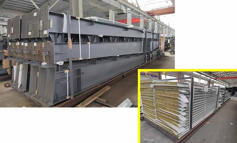 Enclosure System Design: We offer various options of color-coated profiled sheets and insulated sandwich panels (rock wool, polyurethane) that balance thermal performance, fire resistance, and aesthetics. Careful design of roof drainage systems and skylight arrangements enhances building performance.